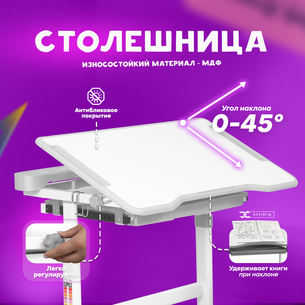 - Регулировка наклона столешницы: 0-45°