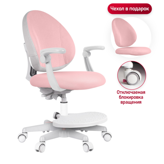 Отличное кресло. С чехлами, подставкой для ног и анатомической спинкой! Цвет -розовый, для девочки в самый раз!!!Минусы: